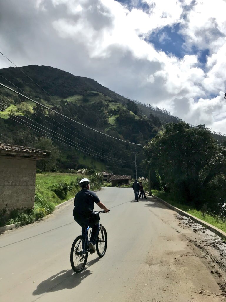 Iniciamos el viaje con un recorrido en bicicleta por la Ruta de San Joaquín, en la que disfrutamos de un viaje mágico por la carretera junto al Río Yanuncay. Gracias al clima espectacular del que disfrutamos, descubrimos paisajes espectaculares, huertos orgánicos y talleres artesanales de cestería. El recorrido lo terminamos aprendiendo sobre el proceso para la elaboración del chocolate artesanal en un molino del lugar.