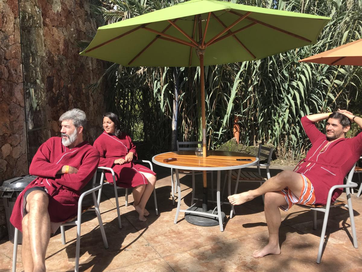 Para relajar nuestros músculos visitamos las aguas termales de la Parroquia Baños, con todo un circuito de Spa nos renovamos para poder disfrutar del plato fuerte de la noche: El Corpus Christi