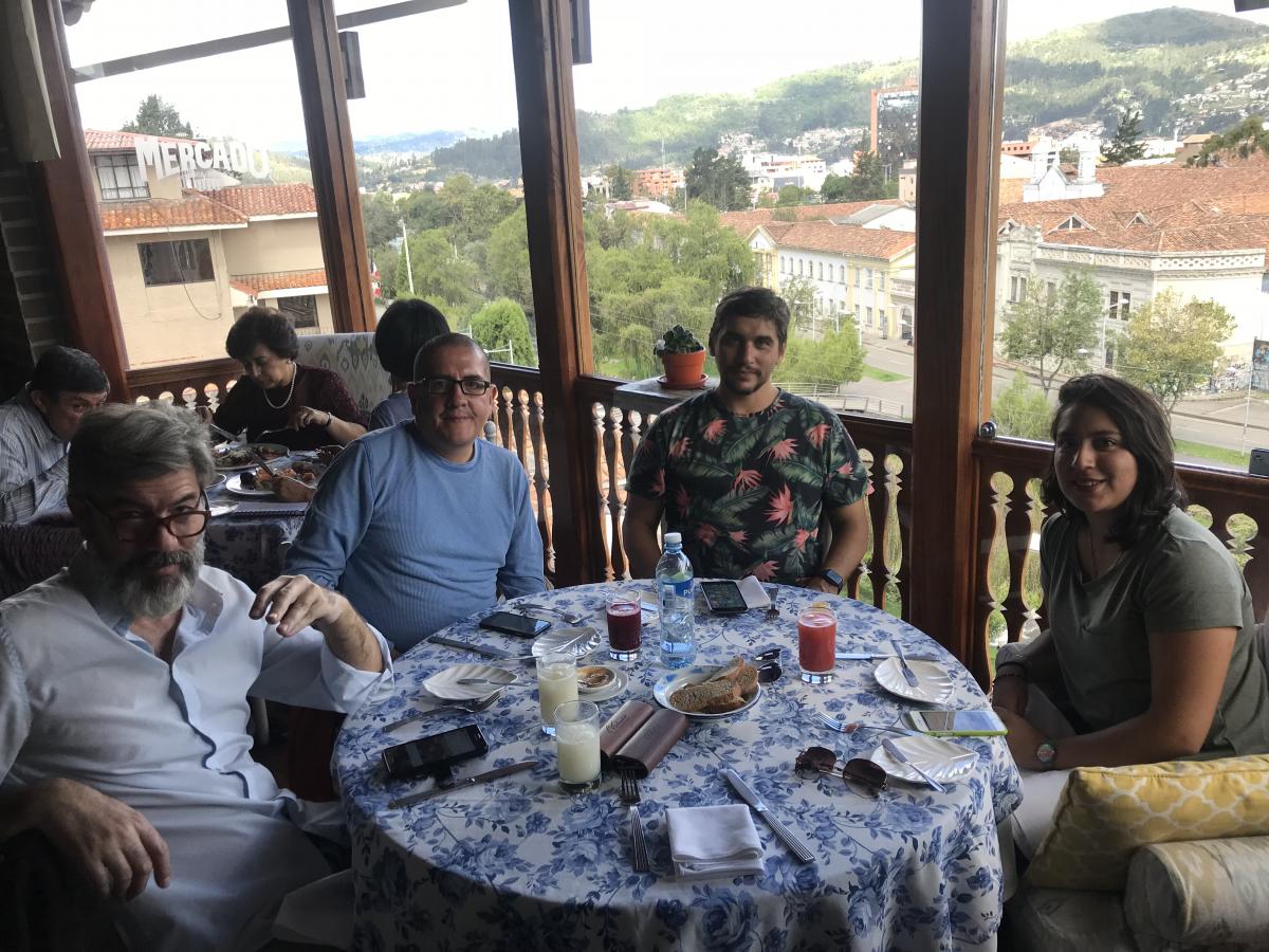 ¡Hora de comer! Deleitamos a nuestros visitantes con la gastronomía típica de la Parroquia de San Joaquín, entre mote pillo, mote sucio, llapingachos, carne seca y yaguana comentábamos el maravilloso paisaje que nos regalo la mañana.